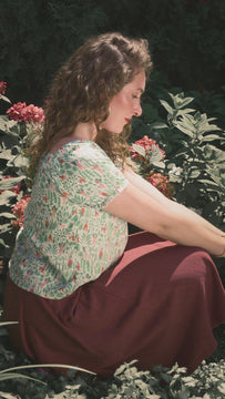 Ce chemisier est inspiré des récoltes de l'été. Comme prendre une grande inspiration dans un verger du sud. D'où le choix d'imprimés et de teintes qui rappellent les meilleures journées de la belle saison!