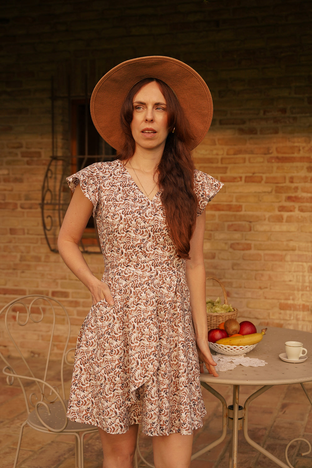 Cette robe est inspirée des récoltes de l'été. Comme prendre une grande inspiration dans un verger du sud. D'où le choix d'imprimés et de teintes qui rappellent les meilleures journées de la belle saison!