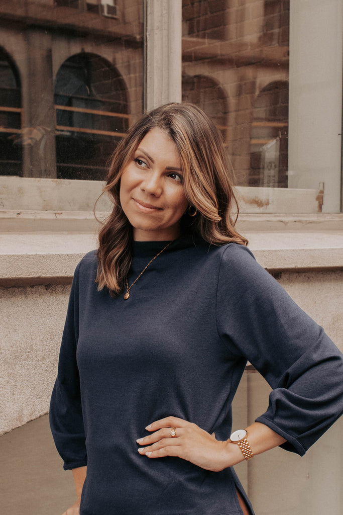 Notre designer s'inspire souvent du cinéma, et pour cette tunique, elle s'est inspiré de Lisbeth Salander (l'héroïne de Millenium) pour sa force et sa résilience.