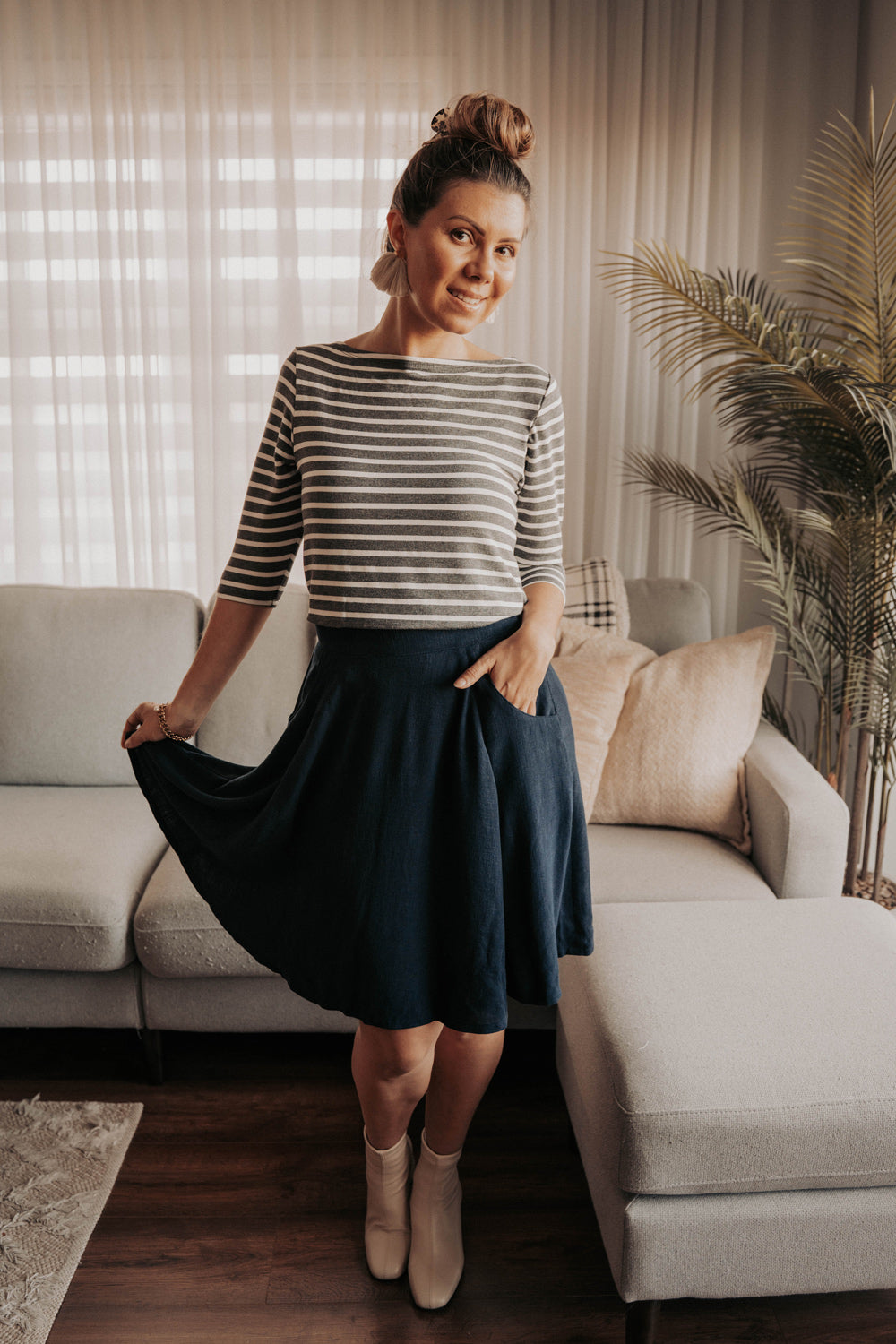 Jupe circulaire taille haute avec poches et élastique à la taille